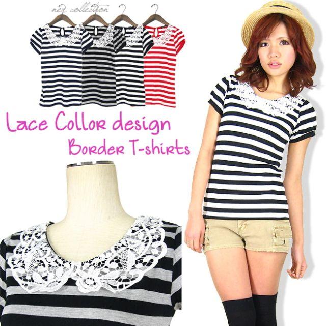 レース襟付ボーダーマリンtシャツ ボーダーtシャツ レディース カットソー Tシャツ Cu004 170 Beautiful Happy 通販 Yahoo ショッピング